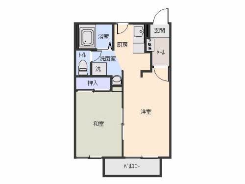 | 詳細間取 | 2K (洋5.4帖×1、和5.4帖×1、キッチン4.2帖) | ||