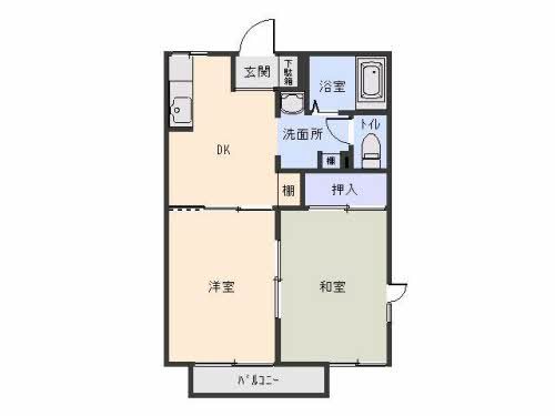 | 詳細間取 | 2K (洋5.4帖×1、和5.4帖×1、キッチン4.8帖) | ||