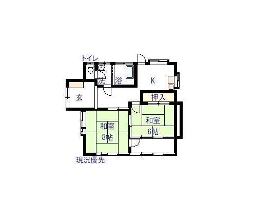 | 詳細間取 | 2K (和8帖×1、和6帖×1、キッチン4帖) | ||